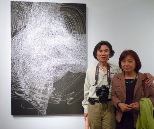 ![]() 楊平猷與作品“昇華”(徐璧攝) ![]() 劉白與夫人在「光的繪畫」前。(徐璧攝) |