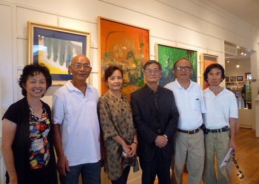 展出畫家左起李淑櫻、楊平猷、蔡蕙香、陳文石、蘇奐豪、劉白。